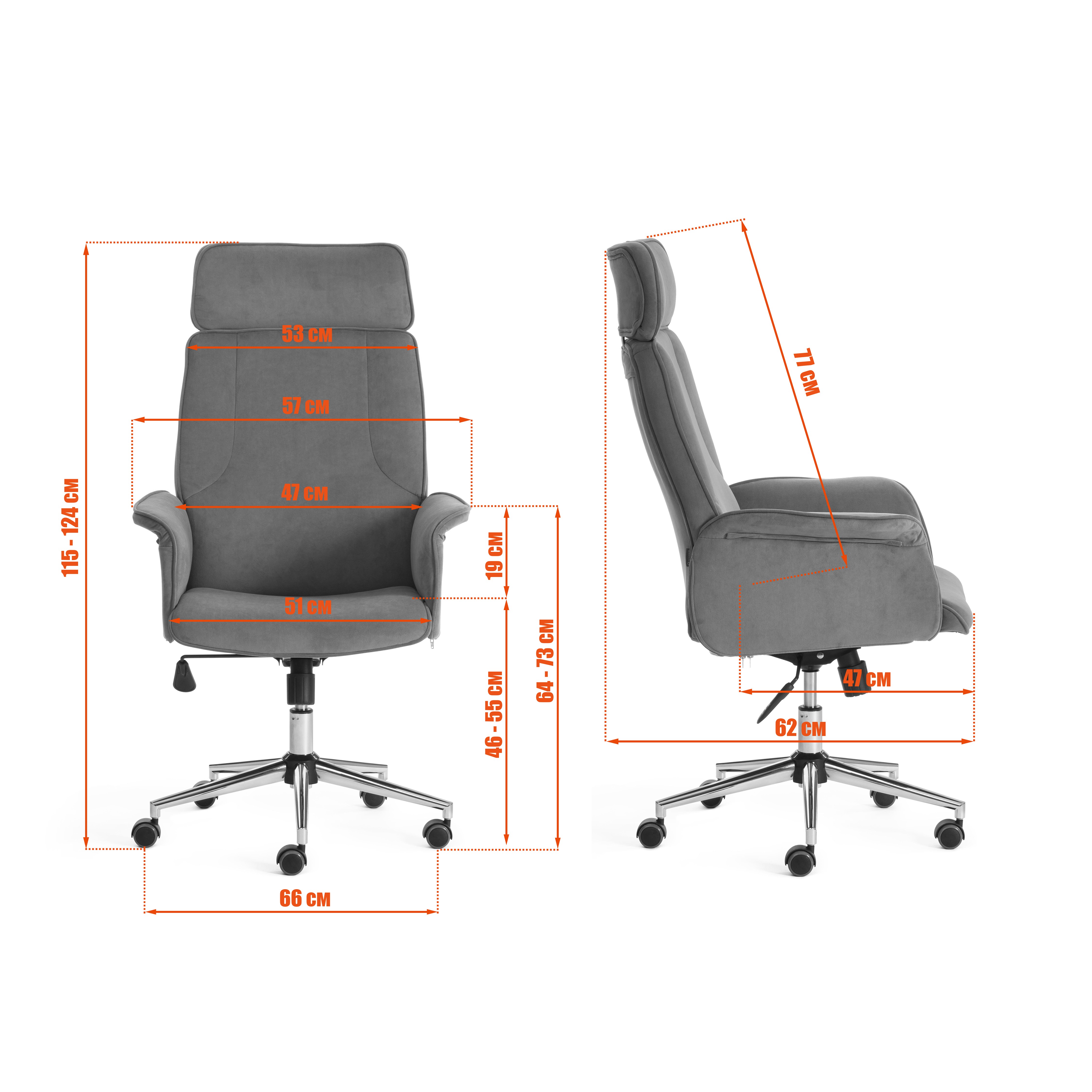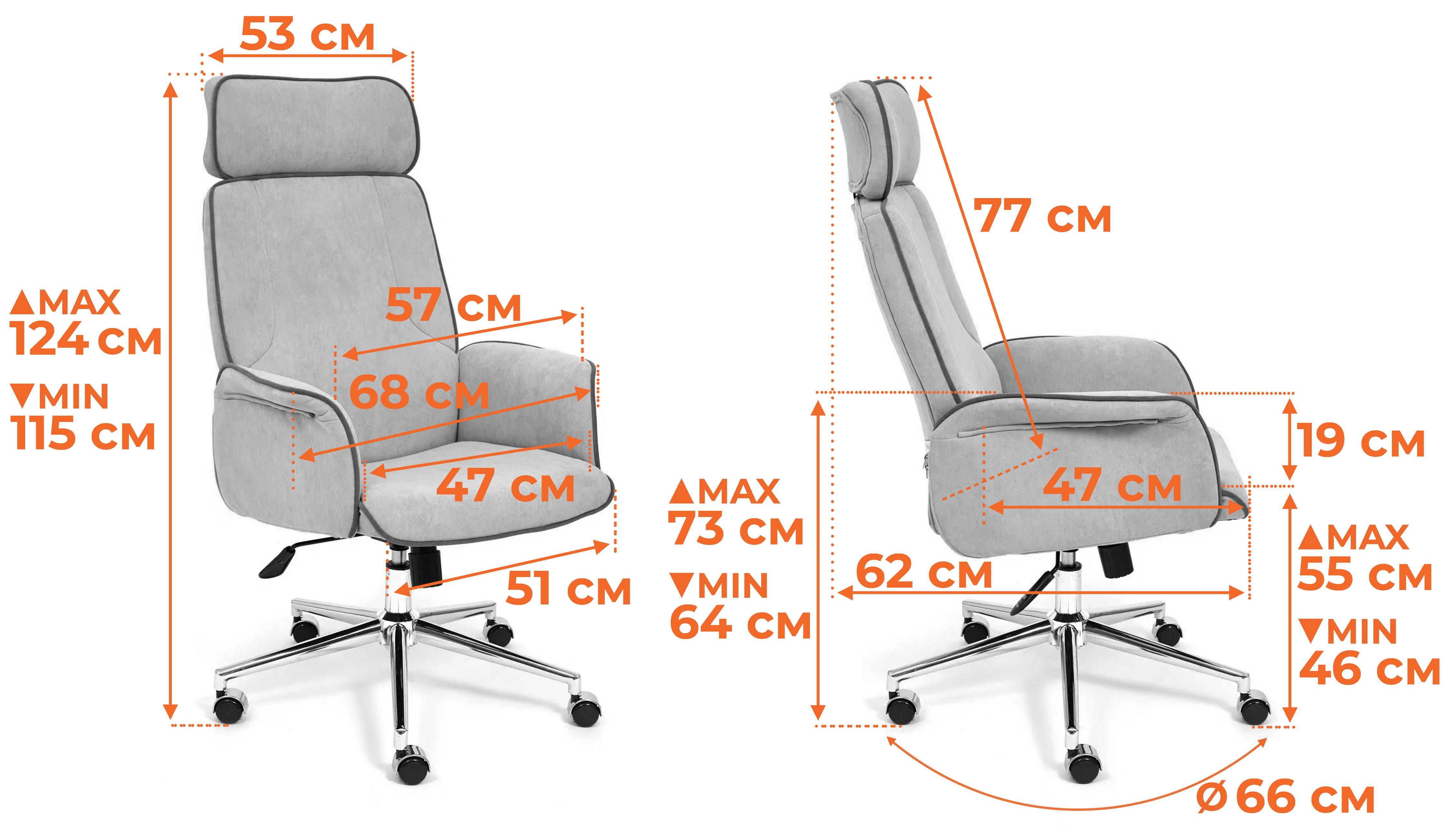 Артикул 13914Механизм - регулировка высоты и наклона с фиксацией в 1 положении. Крестовина - металлическая хромированная. Ролики - прорезиненные. Максимальная нагрузка 120кг. Страна-производитель: Россия