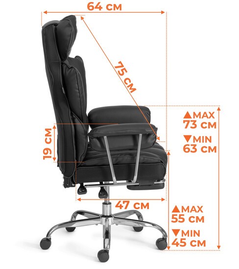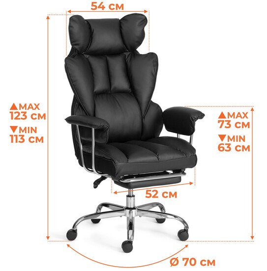 Кресло Comfy CR — это стильное и функциональное решение для офисного пространства, которое отлично подойдет как для кабинета руководителя, так и для переговорной комнаты. Оно выделяется своим качеством и дизайном, что придаст интерьеру презентабельный вид. Основные характеристики: 1. Каркас и наполнение: - Спинка и сиденье из многослойной фанеры толщиной 13 мм. - Наполнение из ППУ разной плотности (от 18 до 28 кг/м³) для комфортного использования. - В спинке предусмотрены пружинные блоки для дополнительной поддержки. 2. Обивка: - ткань держивающая 30 000 циклов по тесту Мартиндейла, что обеспечивает долговечность. 3. Подголовник: - Интегрированный в спинку, что обеспечивает удобство и поддержку шейного отдела. 4. Подлокотники: - Фиксированные, хромированные с мягкими накладками для комфортного положения рук. 5. Механизм: - Изменение высоты сиденья. - Угол наклона спинки можно регулировать до 45 градусов с фиксацией в любом положении. - Без регулировки жесткости качания. 6. Газовый лифт: - Класс 3, хромированный, с ходом около 90 мм для легкой регулировки высоты. 7. Основание: - 5-лучевая стальная крестовина с хромированным покрытием, разборная. - Толщина стенки 1,1 мм, диаметр 700 мм, в соответствии со стандартом BIFMA. 8. Ролики: - Диаметром 60 мм с полиуретановым покрытием, подходящие для паркетных и ламинатных полов. - Шток 11 мм, также в соответствии с стандартом BIFMA. 9. Имеется выдвижная, хромированная подставка под ноги. 10. Нагрузка: - Максимальный вес пользователя — до 120 кг. Кресло Comfy CR сочетает в себе комфорт и эргономику, делая его идеальным выбором для длительного использования в офисе или дома.