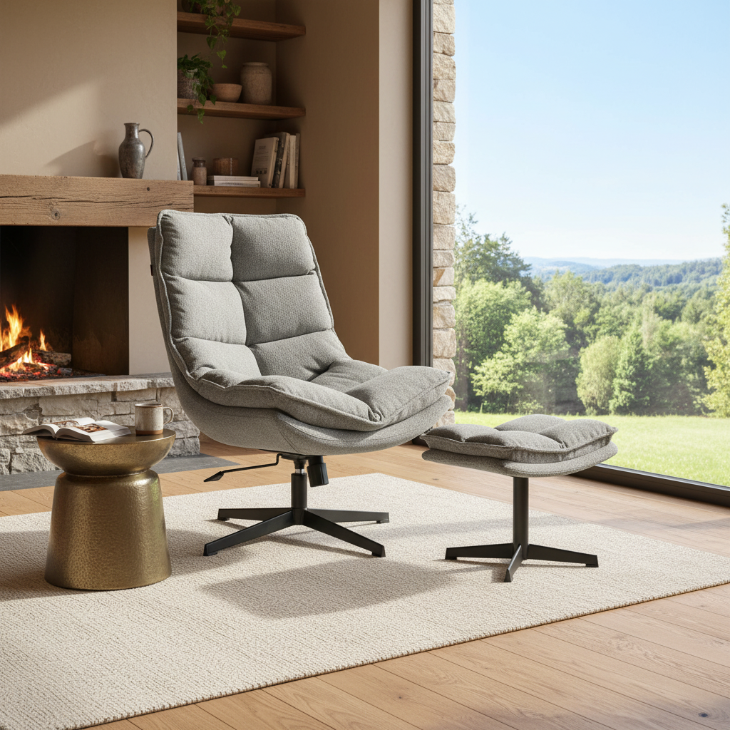 Кресло лаунж Reflex/Рефлекс с пуфом представляем вам идеальное решение для создания уютного уголка в вашем доме – комплект, состоящий из комфортного кресла для отдыха и стильного пуфа. Этот набор призван подарить вам истинное расслабление, сочетая в себе элегантность винтажного стиля и современные технологии комфорта. Кресло для отдыха: Кресло лаунж Reflex/Рефлекс с пуфом – настоящее воплощение уюта и стиля. Его конструкция продумана до мелочей для вашего максимального удобства. Прочный металлический каркас обеспечивает надежность, а мягкая спинка и сиденье на гнутоклеенном основании, гарантируют непревзойденный комфорт. Кресло легко вращается на 360 градусов, позволяя вам свободно менять положение, а наличие подъемного механизма и механизма качания добавляет функциональности, делая его идеальным для чтения, просмотра фильмов или просто отдыха. Основание кресла выполнено в виде элегантной металлической четырехлучевой крестовины с треугольным сечением. Черное порошковое покрытие с деликатной шагренью придает ему изысканный вид, а пластиковые подпятники защищают ваш пол от царапин. Обивка кресло лаунж Reflex/Рефлекс с пуфом с выполнена из приятного на ощупь велюра с эффектом букле, доступного в двух благородных цветовых решениях, что позволяет подобрать идеальный вариант для вашего интерьера. Пуф для ног: Дополните свой отдых с помощью этого стильного пуфа. Он создан для того, чтобы стать идеальной подставкой для ваших ног, превращая кресло в полноценное место для релаксации. Пуф также оснащен прочной металлической четырехлучевой крестовиной с треугольным сечением и пластиковыми подпятниками, обеспечивая устойчивость и защиту пола. Мягкое, эргономичное сиденье пуфа наполнено пенополиуретаном различной плотности и аэропухом, что создает ощущение воздушной мягкости и комфорта. Обивка выполнена из того же высококачественного велюра или букле, что и кресло, создавая гармоничный ансамбль. Общие характеристики: Этот комплект кресла и пуфа станет настоящим украшением вашего дома, гармонично вписываясь как в современные, так и в винтажные интерьеры. Он идеально подойдет для гостиной, спальни или кабинета, создавая атмосферу уюта и спокойствия. Размеры кресла: 75 см (ширина) x 85 см (глубина) x 94 см (высота), вес: 13,6 кг. Размеры пуфа: 53 см (ширина) x 35 см (глубина) x 42,5 см (высота), вес: 4,25 кг.
