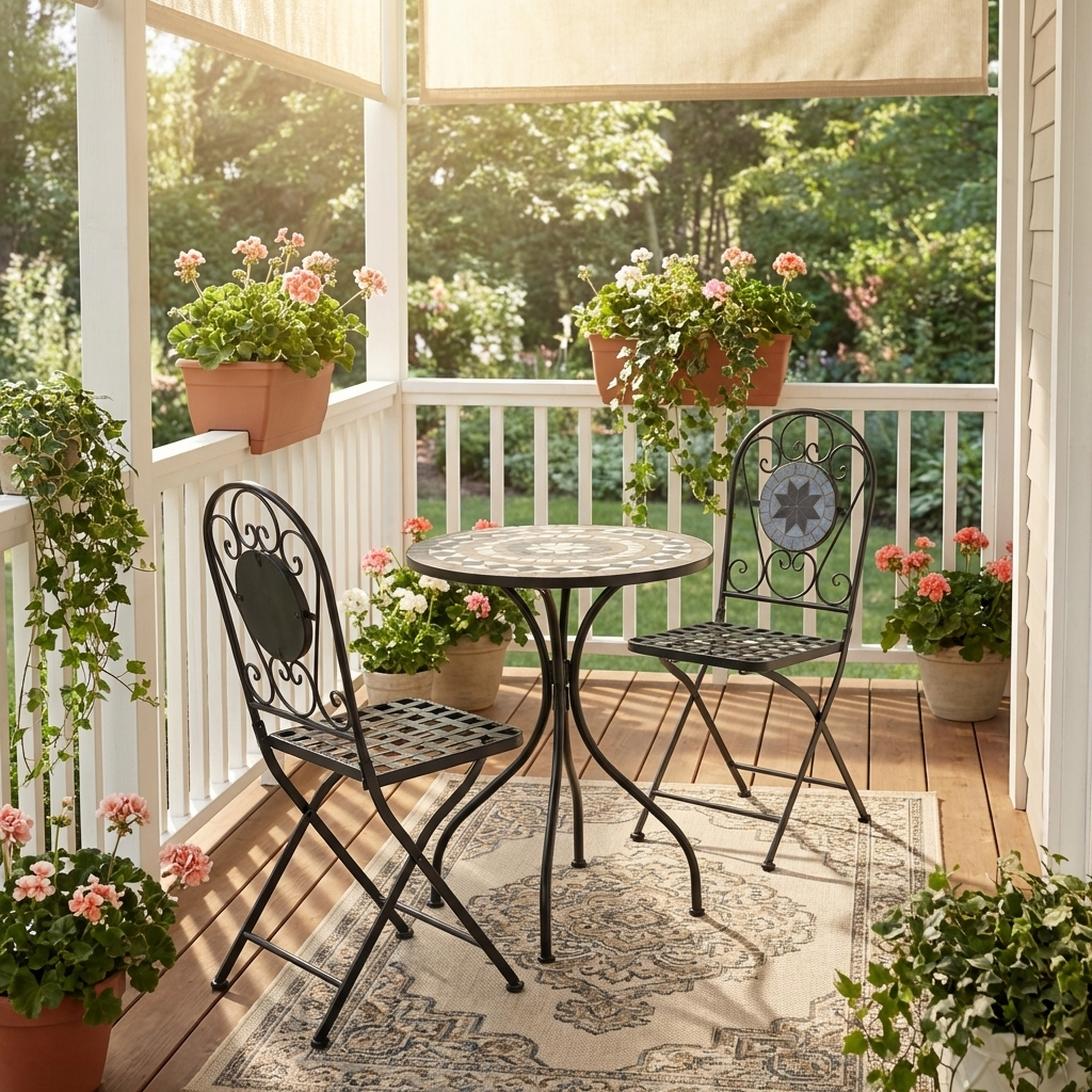 Изящная форма и изысканный дизайн компактного столика Secret De Maison Romeo/Ромео из коллекции Beaujolais/Божоле не только выгодно выделяют его в интерьере, но и помогут создать гармоничное пространство на загородной веранде, городском балконе или приусадебном участке. Столешница, декорированная оригинальным винтажным орнаментом из мозаики, и прочный каркас, изготовленный из стального сплава с напылением краски, выглядят дорого, элегантно, добавят ноты изысканности и индивидуальности в ваш интерьер. Удобные размеры и простота конструкции позволяют использовать столик Romeo/Ромео, как по прямому назначению, так и в качестве дополнительной сервировочной поверхности. Модель практична, надежна, устойчива к воздействию влаги, температурным перепадам и проста в уходе. Прекрасно сочетается с мебелью из коллекции Beaujolais/Божоле, поставляется в разобранном виде.