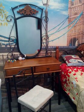 Артикул 10392Туалетный столик со стулом в классическом стиле. Лёгкая малазийская ковка с романтическим узором. Столешница с ящиками и декор из натуральной гевеи. Стул со спинкой и мягкой сидушкой.